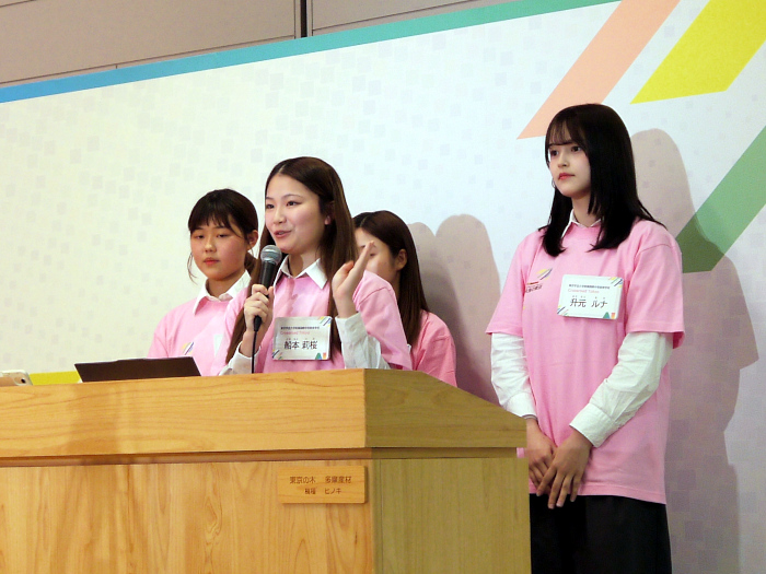 東京都では、AIをはじめとしたデジタルが生活のあらゆる場面で不可欠な存在になっていく中、デジタルの力で東京のポテンシャルを引き出し、都民が質の高い生活を送ることができる「未来の東京」を実現するため、様々な施策を展開している。そこで、昨年の「知事と議論する会」では、都知事へ「未来の東京」に向けたAIなどのデジタルを活用した取り組みを提案するべく、都立新宿山吹高等学校、渋谷教育学園 渋谷高等学校、東京電機大学高等学校、東京学芸大学附属国際中等教育学校の4校12名の生徒がプレゼンテーションを行った。イベントのMCは、タレントのハリー杉山さんと、ITAMAE(Innovative Technology Academic MAEstro)1期企画メンバーで大学生の小目谷藍美さんが務めた。