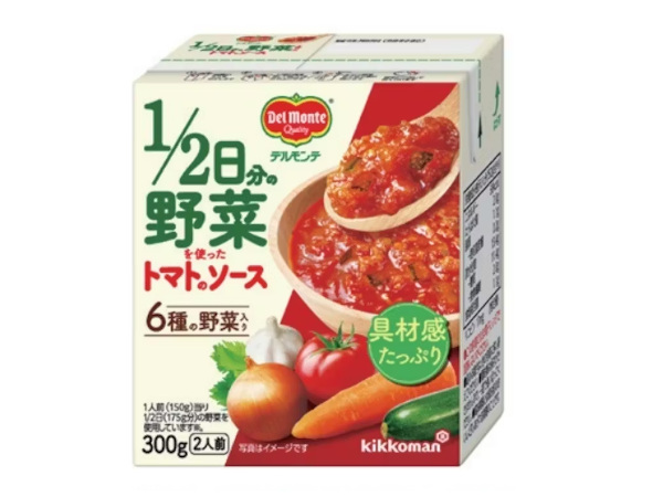 キッコーマン食品、野菜のうまみと具材感が特徴の調理用ソース「デルモンテ 1/2日分の野菜を使ったトマトのソース」を発売