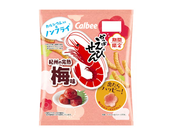 カルビー、紀州産の完熟梅を使用した「かっぱえびせん 紀州の完熟梅味」を期間限定発売