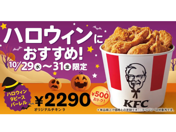日本ケンタッキー、ボリューム満点のバーレルが500円もおトクになった「ハロウィン9ピースバーレル」を3日間限定で販売