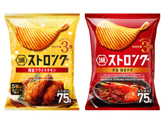湖池屋、濃厚で贅沢な味わいのポテトチップス「湖池屋ストロング 極旨フライドチキン/辛旨 海老チゲ」をコンビニで期間限定発売