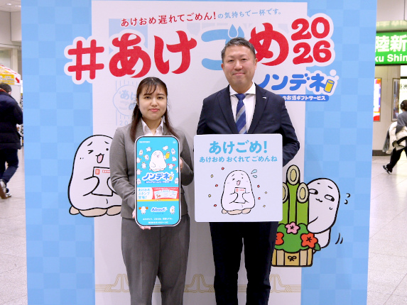 サントリー、正月終わりの年賀イベント「#あけごめ by ノンデネ」をJR東京駅で開催、年始の挨拶をいいそびれた気まずさ解消