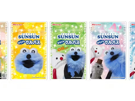 丸大食品、SNSで人気のキャラクター「パペットスンスン」をパッケージにデザインしたひとくちカルパスを発売
