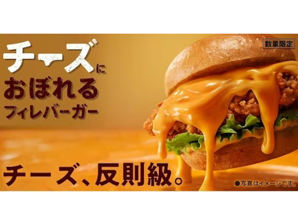 日本ケンタッキー、「チーズにおぼれるフィレバーガー」2種と「チーズにおぼれるツイスター」を数量限定発売