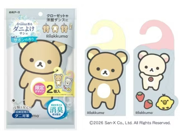 白元アース、衣類の収納空間のダニよけができる「アロマ香る ダニよけサシェ サボンの香り リラックマ」を数量限定発売