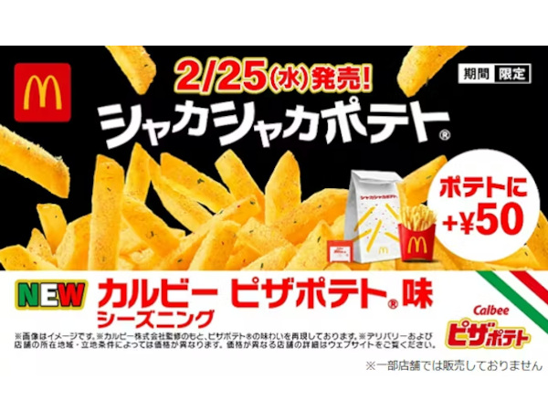 日本マクドナルド、カルビーの「ピザポテト」とコラボした「シャカシャカポテト カルビー ピザポテト味」を期間限定販売