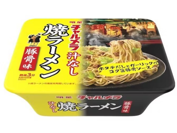 明星食品、ご当地屋台で人気の焼きラーメンのカップめん「明星 チャルメラ 汁なし 豚骨焼ラーメン」を発売