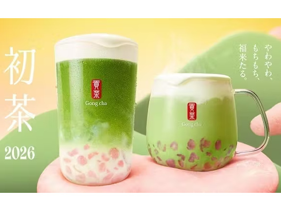 ゴンチャ、本格的な抹茶と紅白のトッピングで新年気分を盛り上げるデザートティー「もちmochi抹茶」を期間限定販売