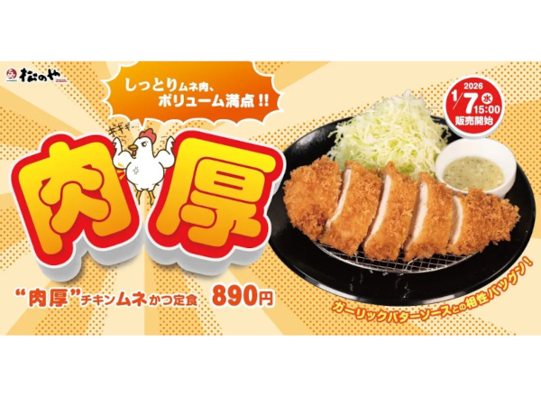 松屋フーズ、とんかつ専門店の「松のや」でしっとりやわらか「肉厚チキンムネかつ」を発売