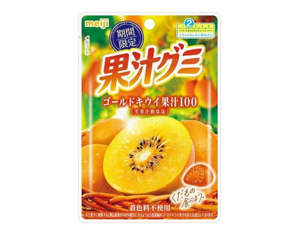 明治、くだもののおいしさをぎゅっととじこめた「果汁グミ」ブランドから「果汁グミゴールドキウイ/弾力プラスもも」を発売