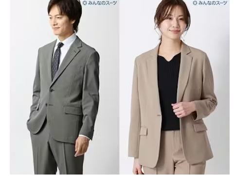 青山商事、全世代向け「みんなのスーツ」にメンズは初の柄物「千鳥格子」とレディースには新色「ベージュ」を追加し発売
