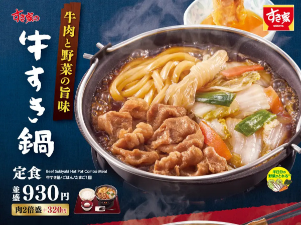 すき家、たっぷりの具材を楽しめる「牛すき鍋定食」としびれる辛さがやみつきになる「牛・胡麻麻辣湯鍋定食」を発売