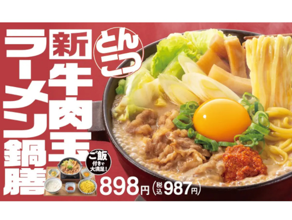 吉野家、コクと旨みのとんこつラーメン鍋「牛肉玉ラーメン鍋膳(とんこつ)」を期間限定販売