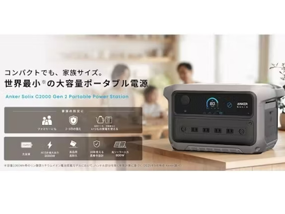 アンカー・ジャパン、大容量ポータブル電源「Anker Solix C2000 Gen 2 Portable Power Station」を予約販売開始